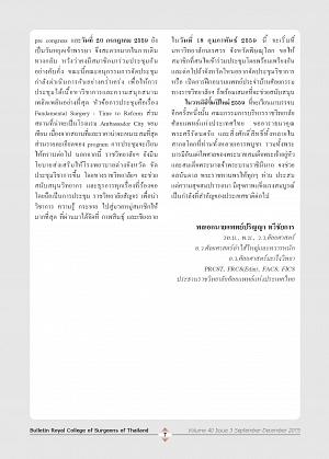 จุลสาร ราชวิทยาศัลยแพทย์แห่งประเทศไทย ปีที่ 40 ฉบับที่ 3 กันยายน-ธันวาคม 2558