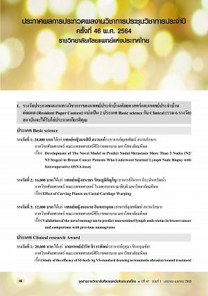 จุลสาร ราชวิทยาศัลยแพทย์แห่งประเทศไทย ปีที่ 47 ฉบับที่ 1 มกราคม-เมษายน 2565